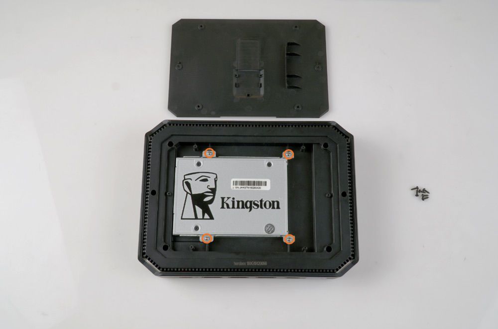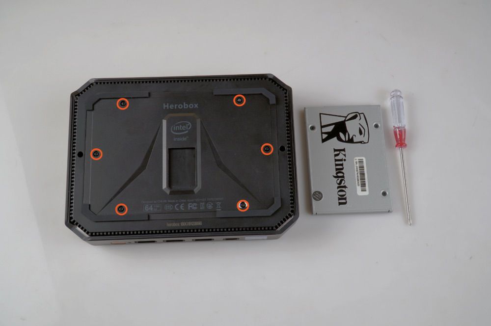 ▼HeroBoxのボトムケースのネジ(6箇所)を外してフタを開けると2.5インチのHDD/SSDを増設できます。↓