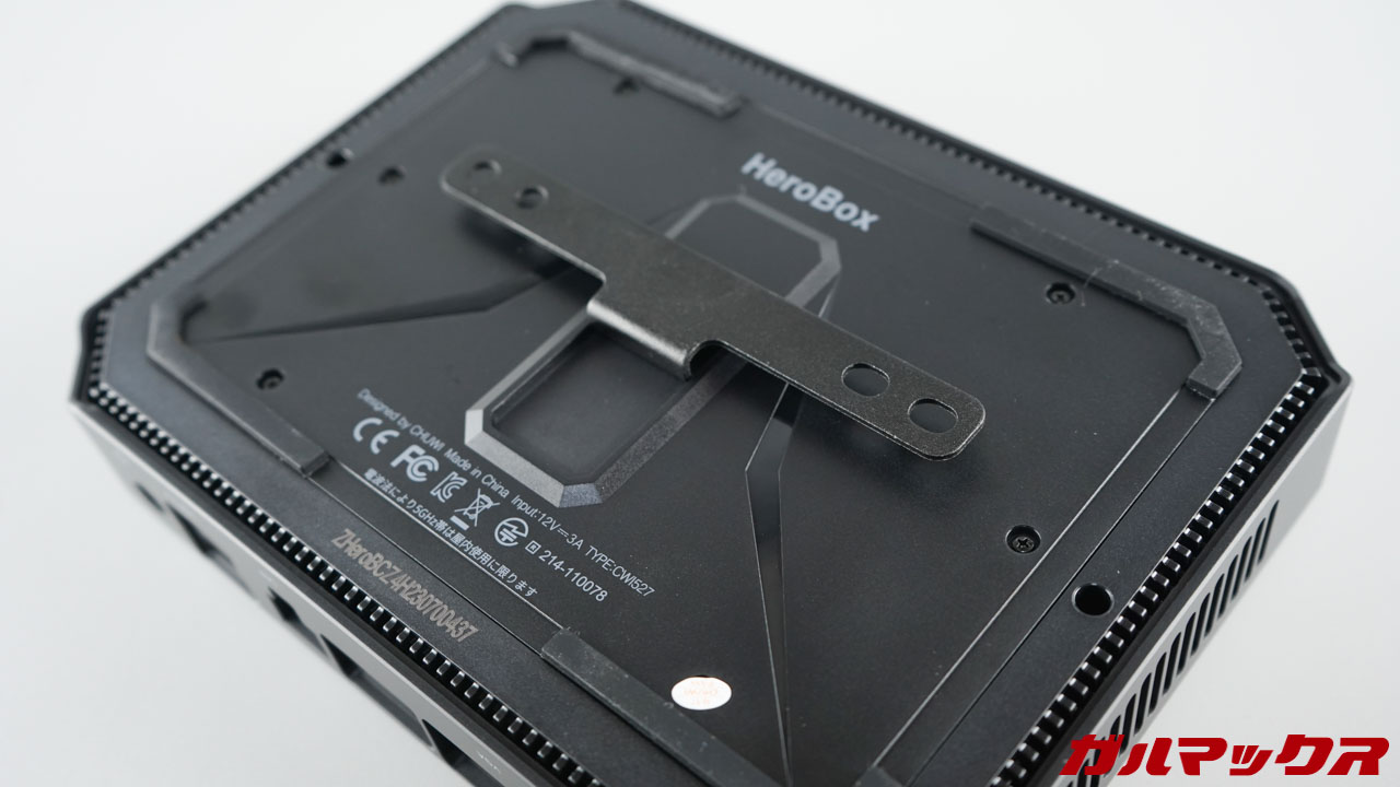 ▼一方でHeroBox 2023は、マウントを先にモニター裏に取り付けて、あとから本体裏にある穴にマウントを引っ掛けるだけ。めちゃくちゃ簡単です。↓