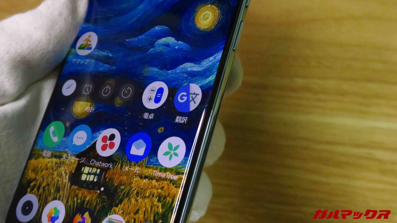 ▼有機ELはもちろん、10.7億色表現対応なので超細かい色分け表示が可能。あと側面が若干ですが丸められておりエッジ形状になっていることで、ひと昔前の高級モデルみたいな印象も受けますね。使いにくさもそれほどありません。↓
