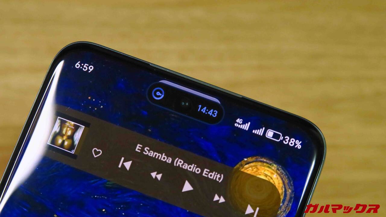 ▼このHONOR 200、メディア再生時やアラームなどで、上部パンチホールが横に広がって対応するコンテンツ表示「マジックカプセル」に対応しています。まんまiPhoneのダイナミック島じゃん。↓