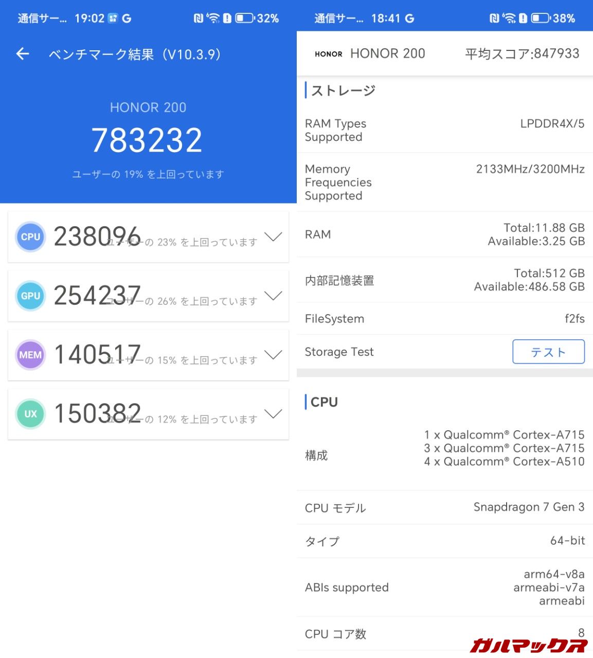 HONOR 200の搭載SoCはSnapdragon 7 Gen 3。まさにミドルハイって位置づけとなるチップセット。個人的な所感としてはひと昔前のハイエンドSnapdragon 865あたりに近い快適さって感じがします。SNSやWEBといった使い方は申し分なく快適に動く。