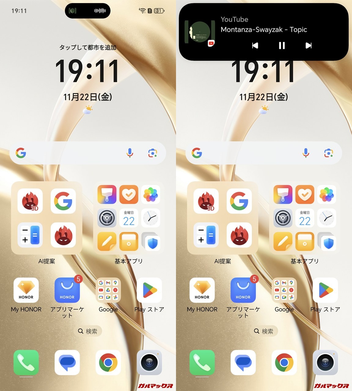 ただのAndroidOSもこういう仕様で表示を消せないからこのMagic OSに限った話ではないんだけど、独自カスタマイズOSだとしたらこういう部分も設定できるようになってほしかったところです。
