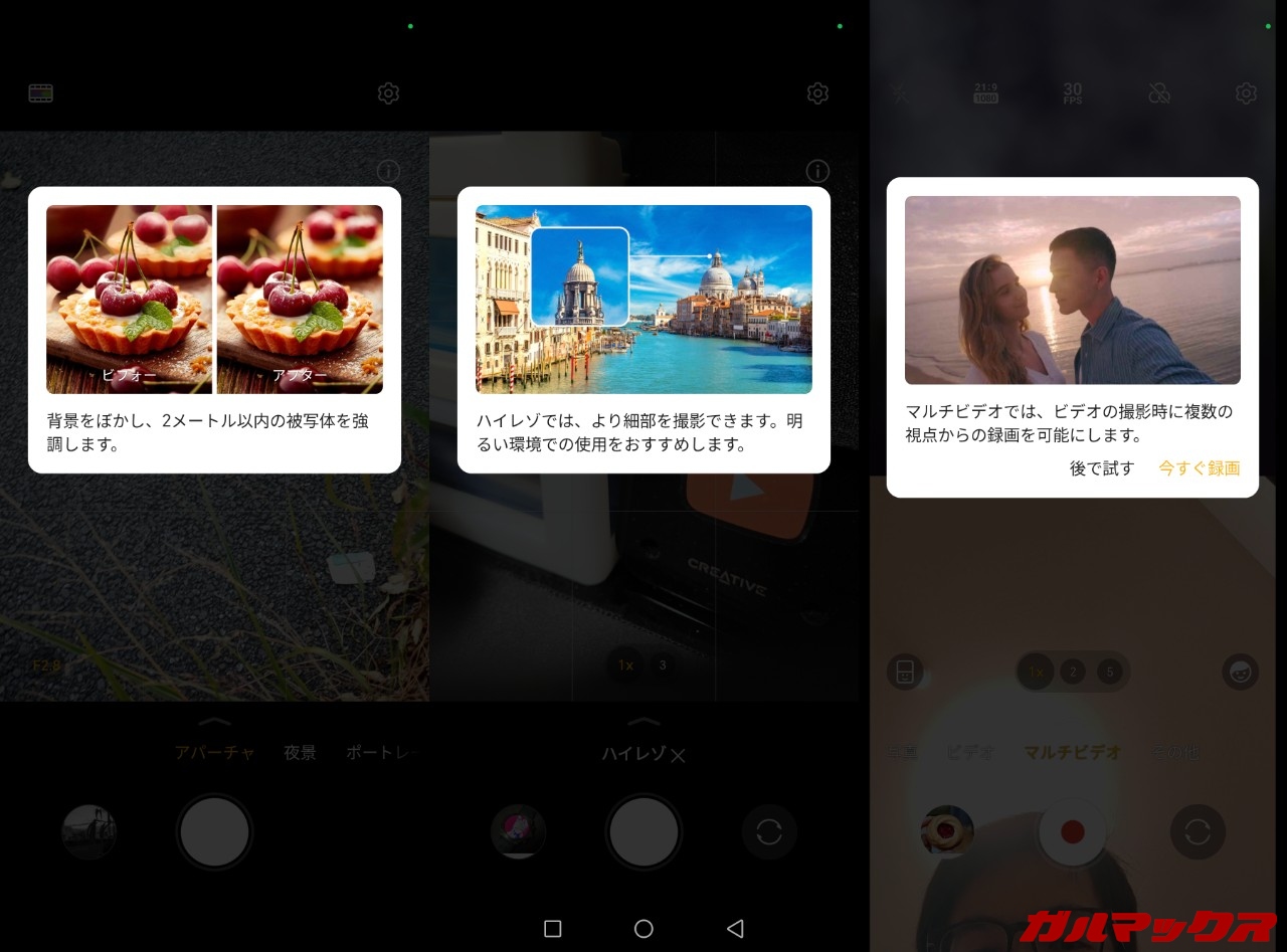 OSで一番不満なのがカメラのクイック起動。大抵のAndroidって電源キー2回押しでカメラを起動できるんですが、こいつはそれができません。