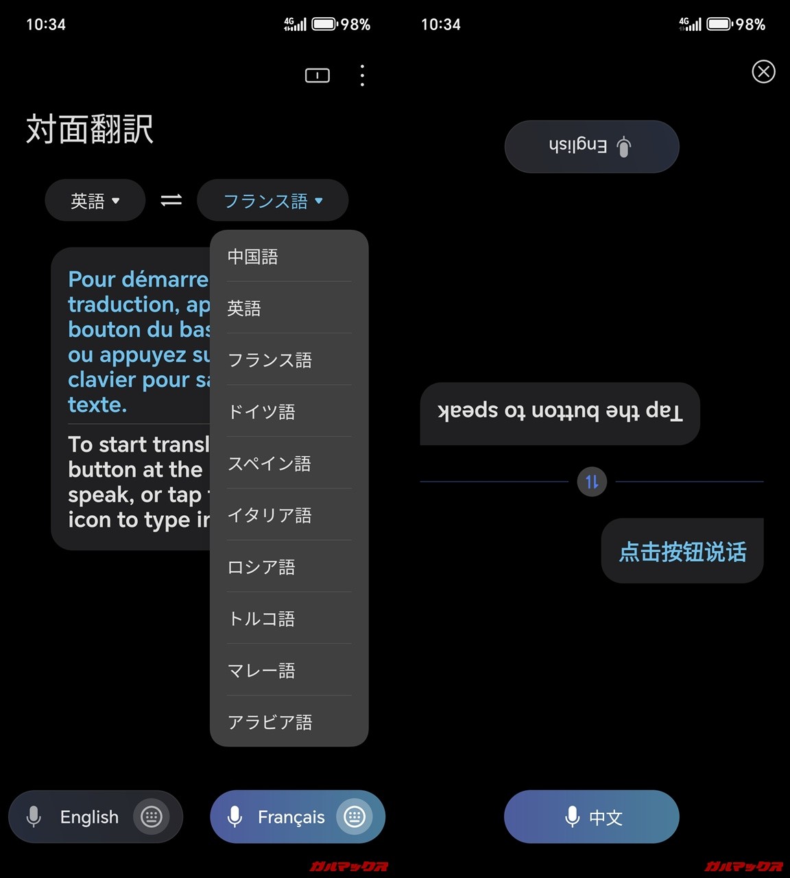 ▼こういう翻訳アプリの言語には日本語が入っていませんしあとからダウンロードってことも出来ませんでした。外国人と話すときこういう機能が便利だったんで残念(´・ω・`)。↓