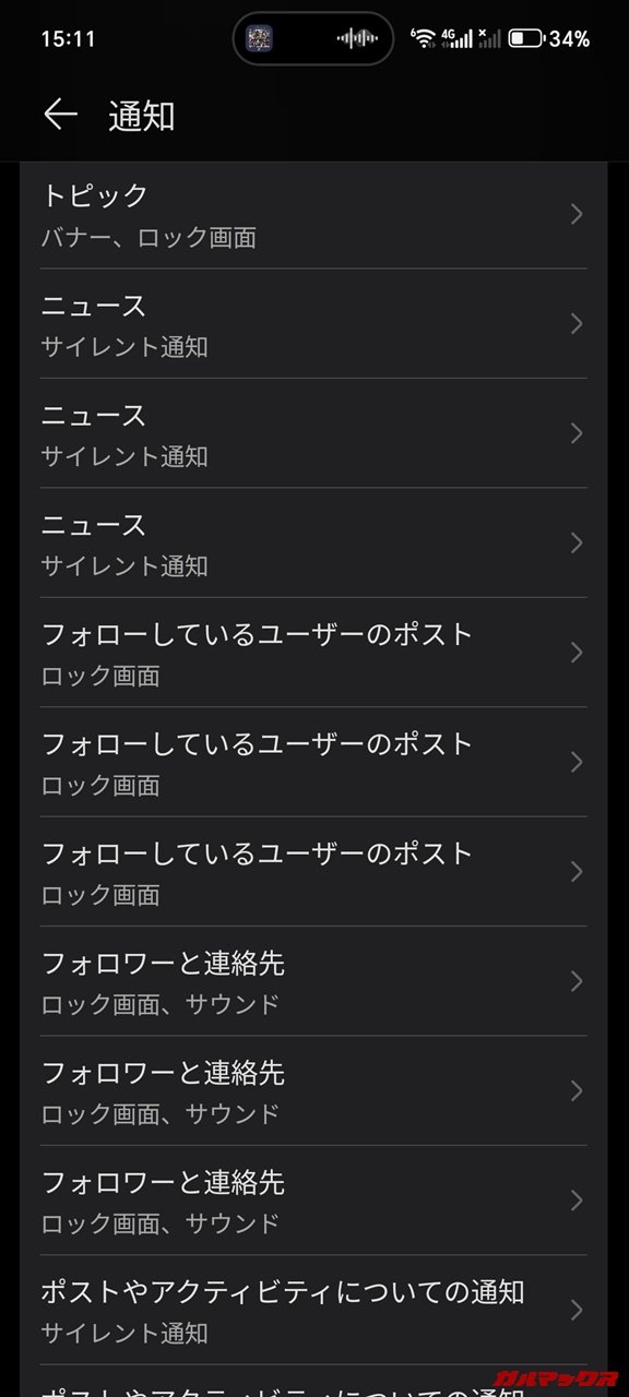 ▼あとアプリの通知設定画面なんですが、Twitterみたく複数アカウントを入れられるアプリではこういう感じでどれがどのアカウントの通知になるかが出てこないのが地味に不便。↓