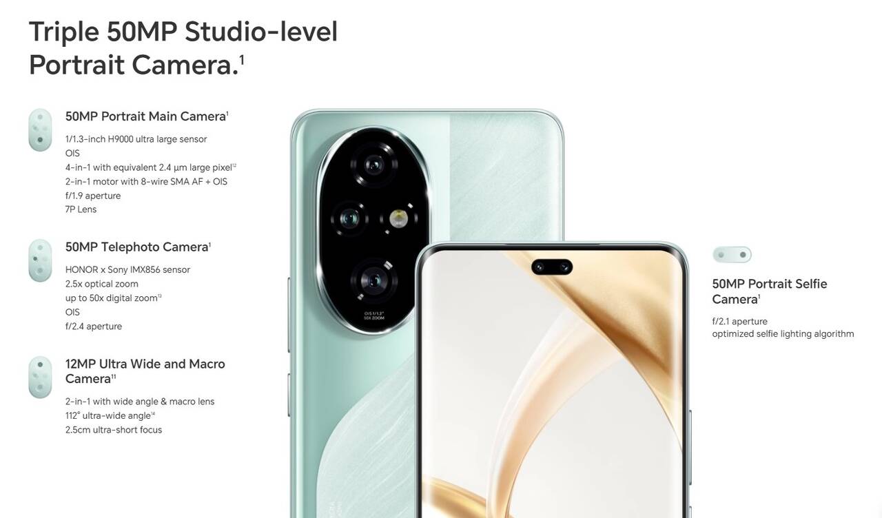 ▼カメラは5,000万画素メイン、5,000万画素の光学2.5倍望遠、1,200万画素の超広角というトリプル構成!ハイコスパブランドながら高画素望遠カメラ搭載はさすがHONORよ。↓
