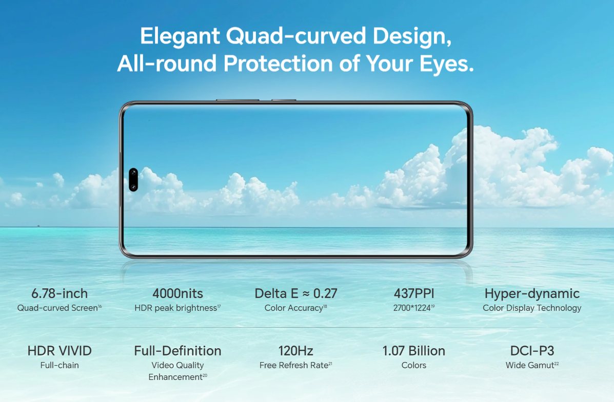 ▼ディスプレイの見た目も個性的!横長パンチホールデザインとなっており、また今ではほぼ絶滅しているエッジ形状となっています。有機ELで最大120Hzリフレッシュレート、2,700×1,224の高解像度で10.7億色表示対応とスペックも優秀のそれ!↓