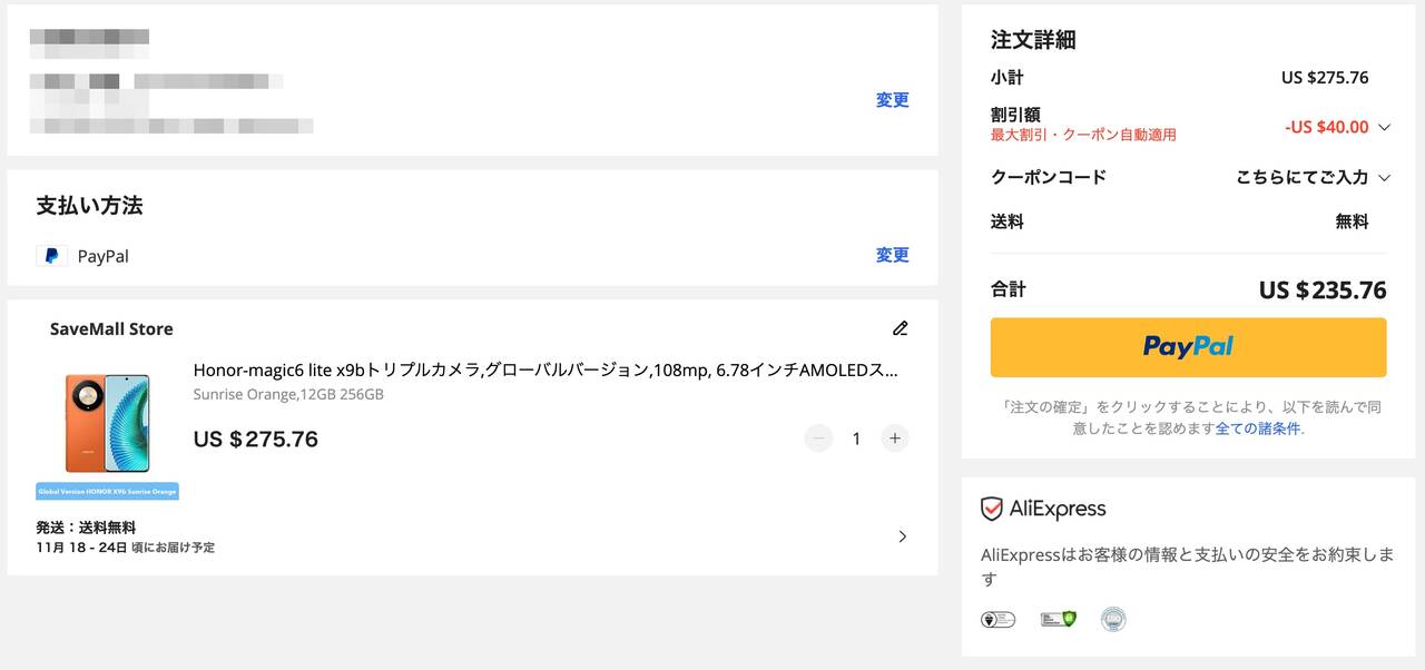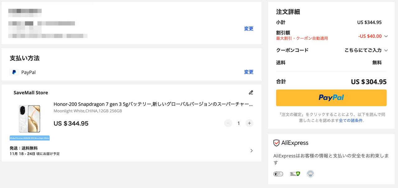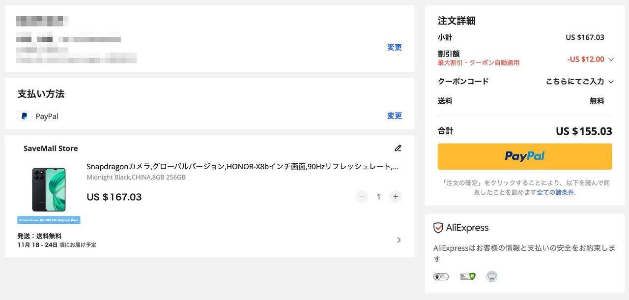 AliExpressのセールでは価格がリアルタイムで変動します。必ず最終価格を確認してから決済するように!