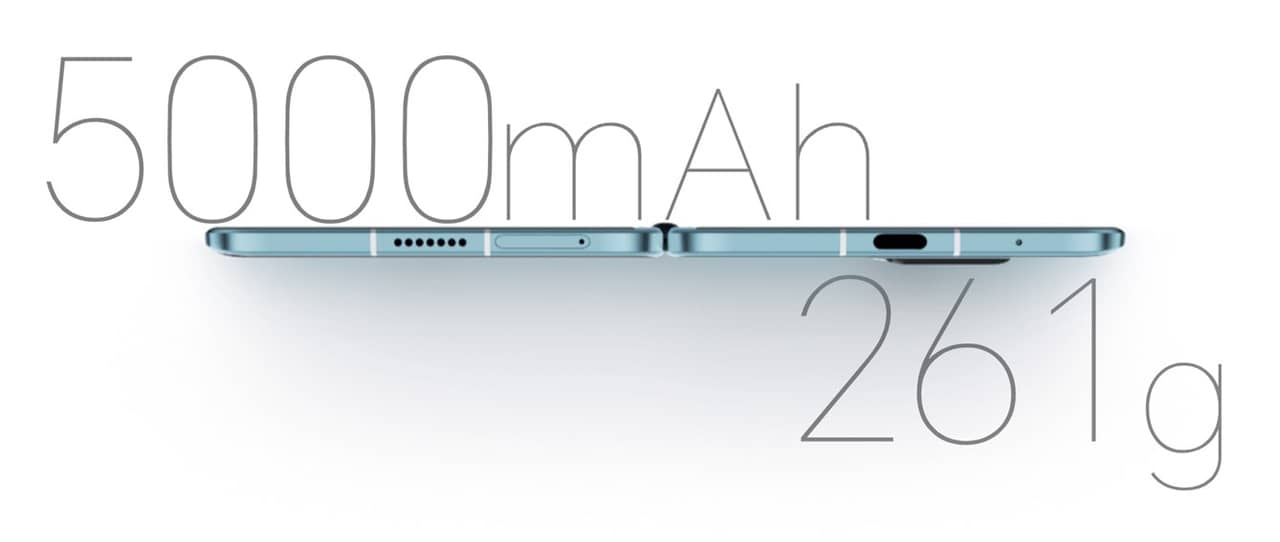 ▼構造上、厚みが普通のスマホよりも増してしまう傾向にあるんですが、このモデルは折りたたんでも12.9ミリ、開くと6.1ミリとかなり薄いですよ!また重さも261gと普通のスマホよりは重いんですが、フォルダブルモデルにおいてはかなり軽いのもGood。↓