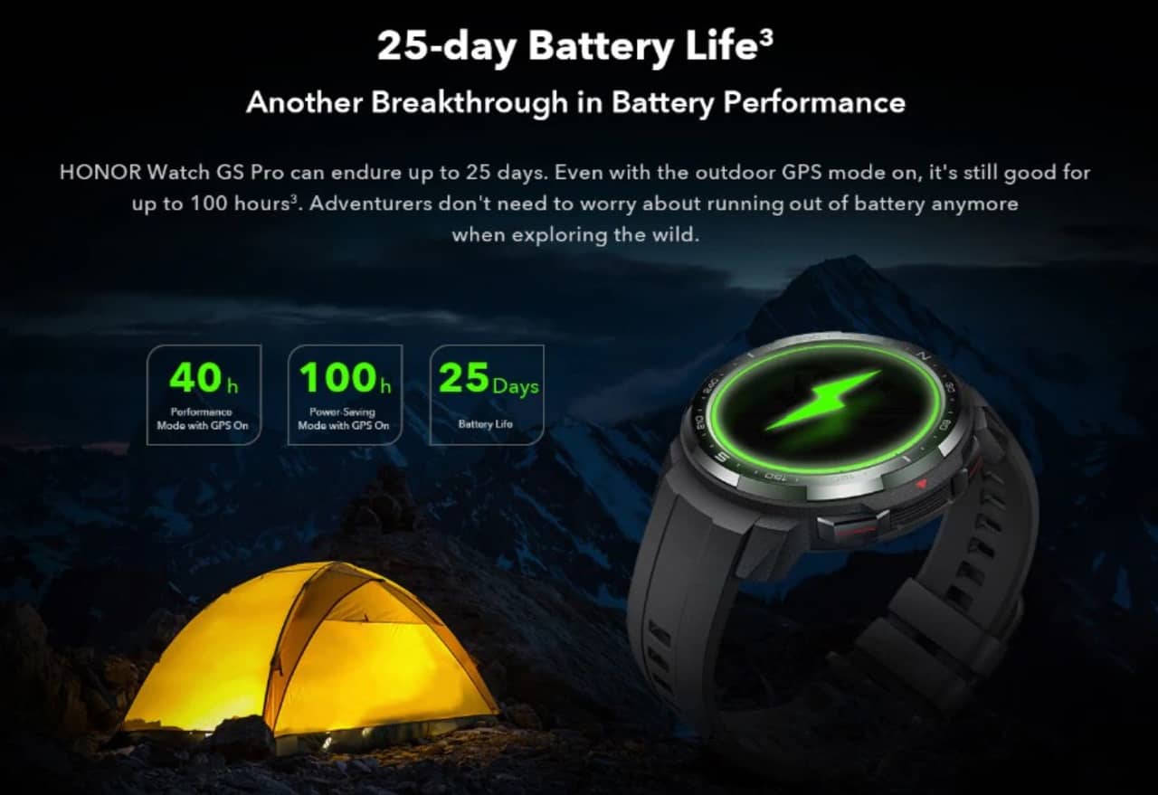 ▼バッテリーは最長14日持つそうです!HONOR Watch GS Proには劣るものの、2週間であればスマートウォッチとしては全然持つ部類ですね。↓