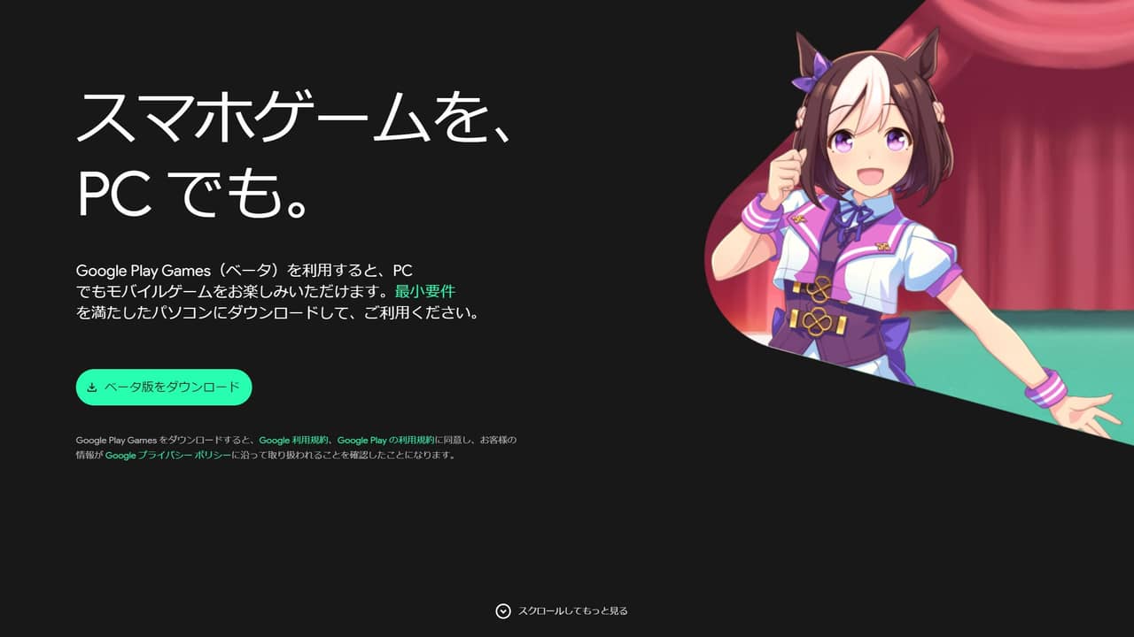▼Google Play GamesはすでにGoogle公式サイトからダウンロードできるようになっとります。なお遊ぶには18歳以上のGoogle個人アカウントが必要。↓