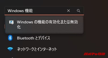 ▼手順に従って「Windows 機能」と検索。出てきた機能の有効化無効化ってやつをクリック。↓