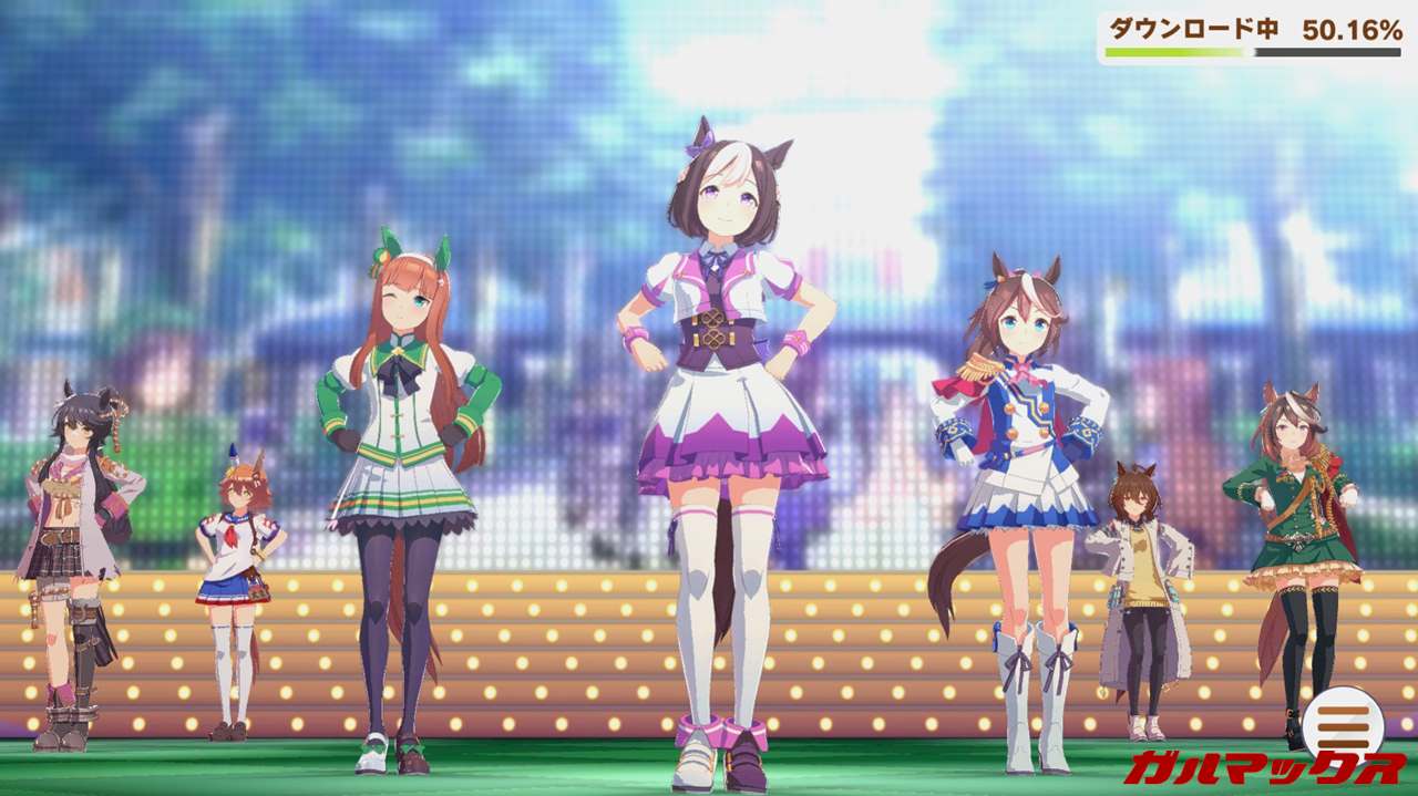 ▼走った後はライブ画面になるんですが、ここでは全画面で表示されました。ウマ娘ファンの方ならこういうデカい画面で存分にライブとか走っているシーンとかを楽しめるのはかなり醍醐味感じるんじゃあないでしょうか。↓