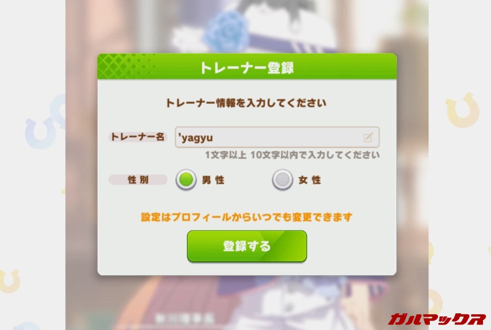 ウマ娘:画面比率が基本的に縦長。日本語入力は不可
