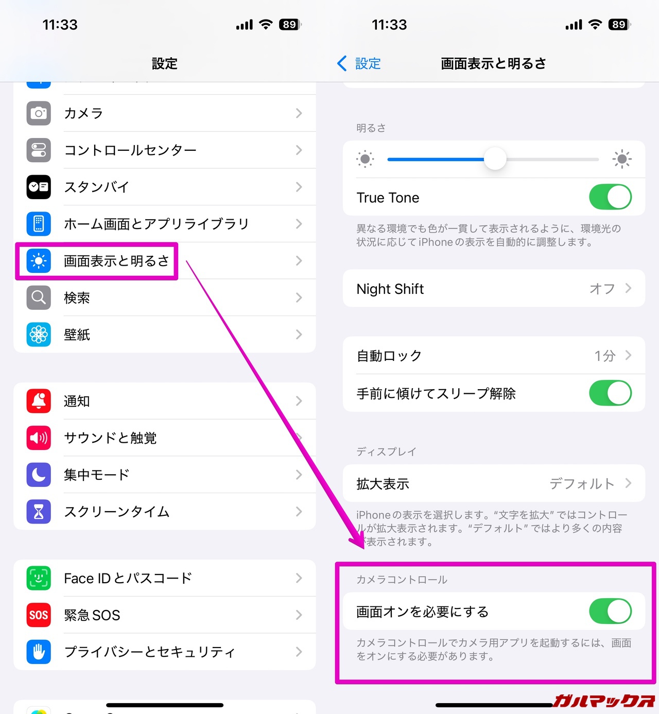 ▼iOS 18.2にアップデートすると設定の「画面表示と明るさ」に「画面オンを必要にする」という項目が増えているはず。ご丁寧にアップデート後もオンになっているんだが、これをオフにするとOK。↓