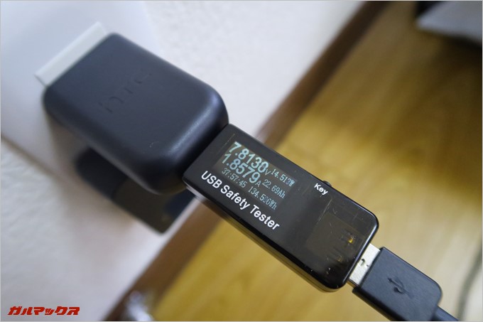 ▼充電中のV/A。↓