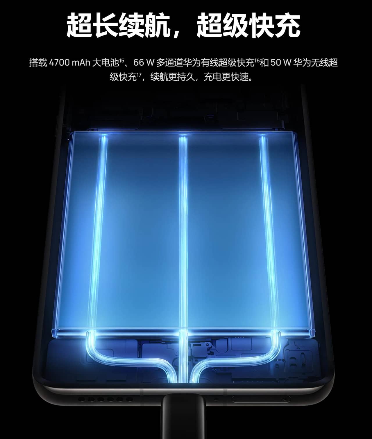 - 4,700mAhバッテリーで66W充電+50Wワイヤレス充電ができる