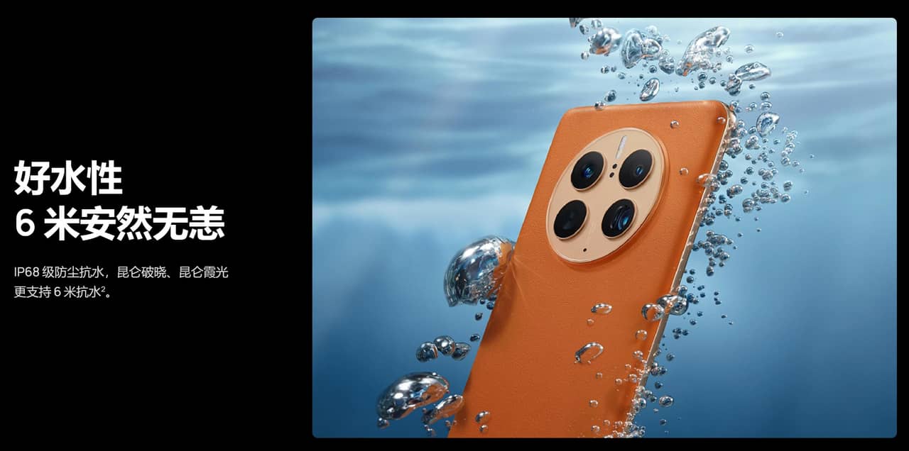 ▼またMate 50 ProはIP68規格を取得しており、水没しても砂まみれになっても壊れにくい耐久性が備わっているのもGood。↓