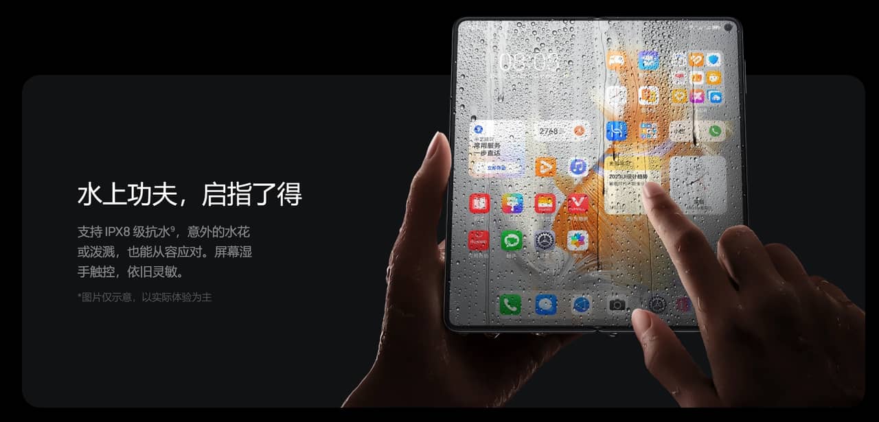 ▼防水仕様なのも嬉しいポイント!Mate X3はIPX8の防水規格に対応しています!なお「防塵」は非対応なのでその点は注意。あくまで防水のみです。↓