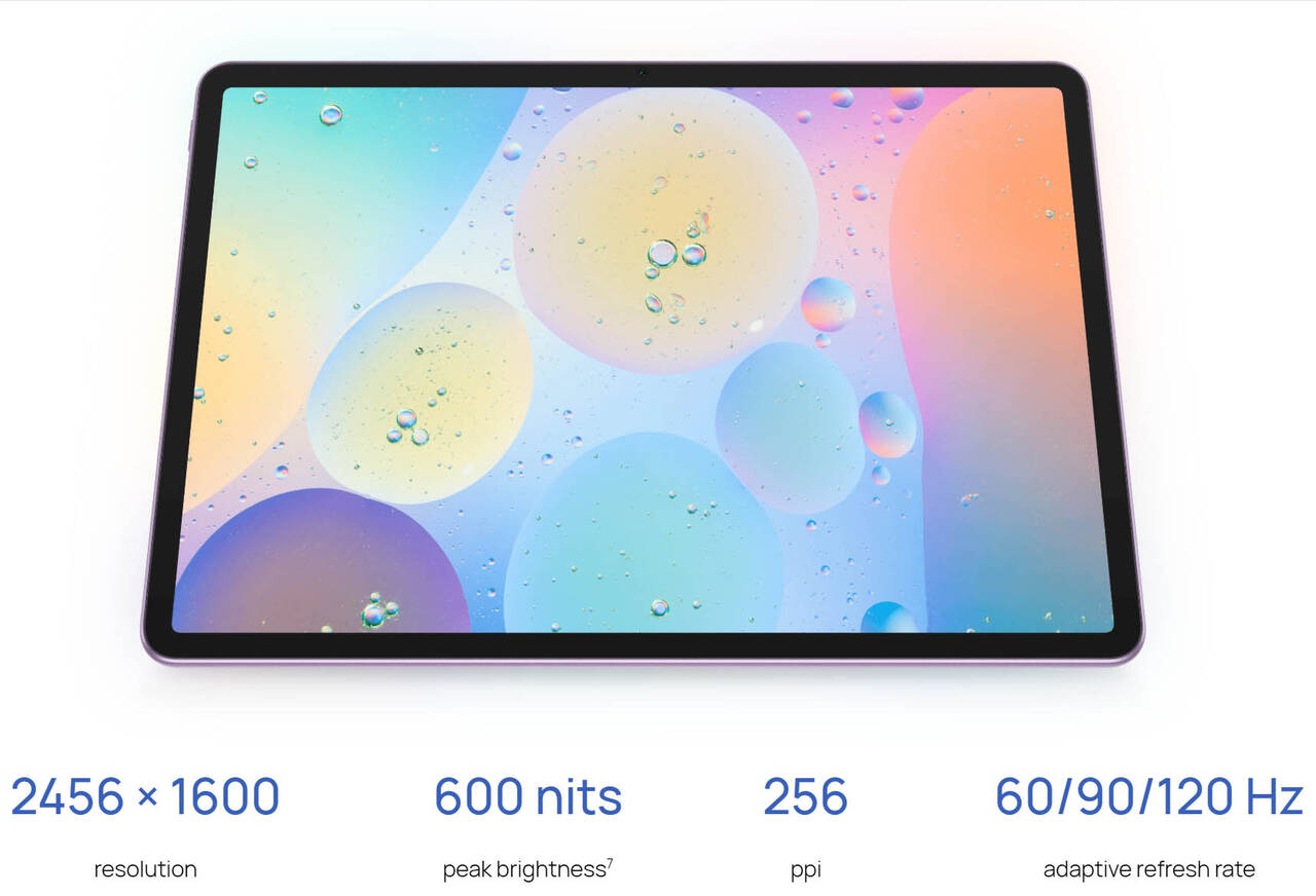 ▼ディスプレイは液晶でサイズは11.5インチ。解像度は2456×1600で、ピーク輝度は600nitsに達します。リフレッシュレートは最大120Hzに対応します。アスペクト比は3:2で、複数アプリの操作や電子書籍の閲覧に適しています。↓
