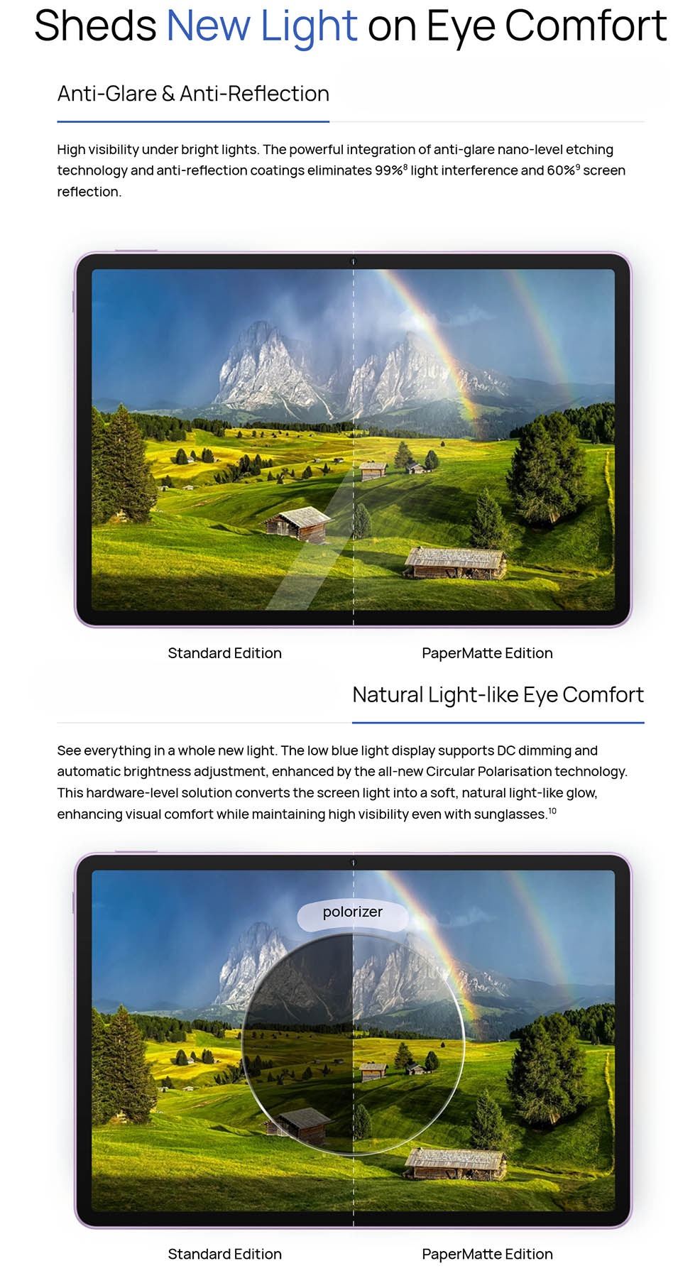 ペーパーマット版は光干渉を99%、画面反射を60%抑え、ブルーライトを大幅カットできるそうです。サングラスを付けたままでも視認性を確保できるらしいので、外でも使いやすそう!