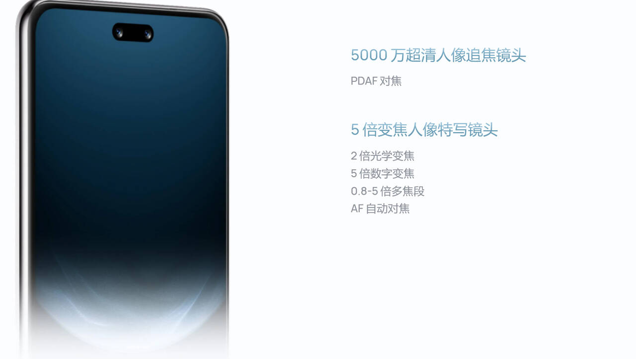 - フロントカメラは50MP(広角)+8MP(望遠)の2カメラ構成