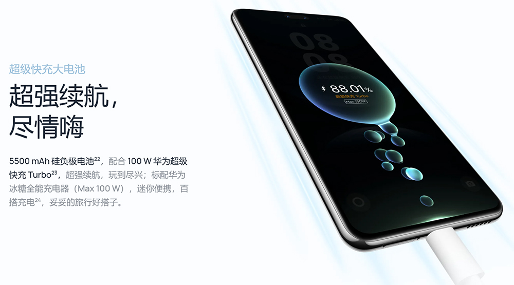 - 5500mAh+100W(SuperCharge)充電対応
