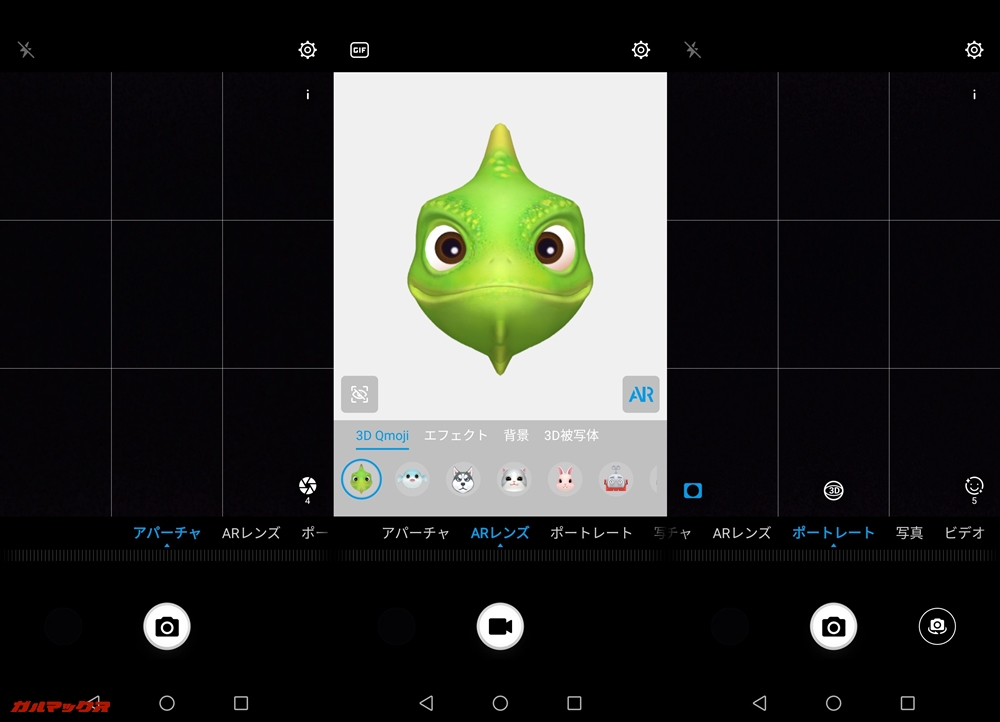 ▼Huawei nova 3iで利用できる撮影モードは、後から背景のボケ具合やピントを再調整出来るアパーチャモード、リアルタイムに映像を加工するSnowのようなARレンズモード、人物の背景を美しくボカすポートレートモード、フルオート撮影出来る写真モード、動画撮影のビデオモードが簡単に選択できるようになっています。↓