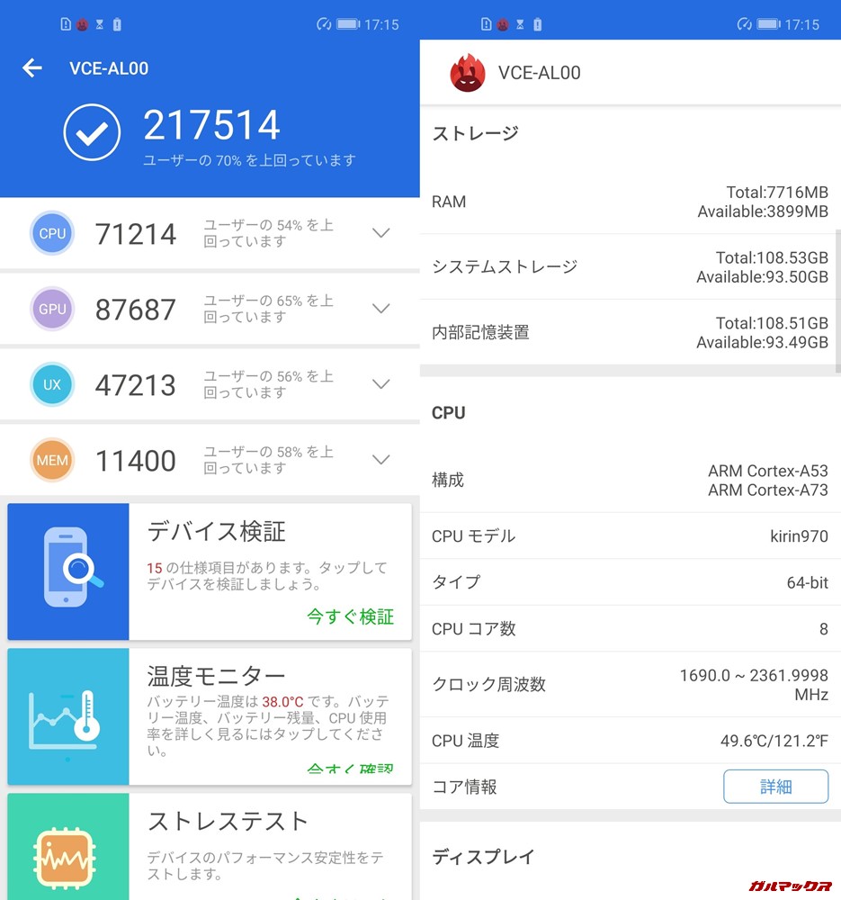 ガルマックスではAnTuTuベンチマークで端末性能をチェックしているので本項目で端末性能を解説してます。