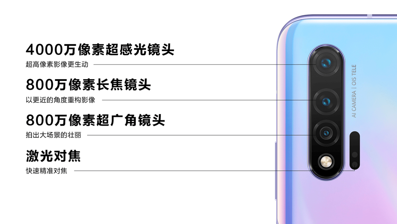 ▼Huawei nova 6のカメラにご注目!カメラ構成は上から40MPのメイン、8MPの望遠、そして8MPの超広角カメラを搭載しているんです!フラグシップらしいトリプルカメラでございます!カメラユニットの横にはレーザーフォーカスセンサーを搭載!形状に統一感がありスマートな見た目でGood!↓