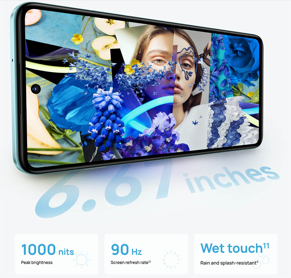 ▼ディスプレイはLCDでサイズは6.67インチ、解像度は1604×720。解像度が低いためドットの荒さが目立つでしょう。リフレッシュレートは90Hzに対応しており、60Hz端末と比較して若干滑らかなスクロールが期待できます。↓