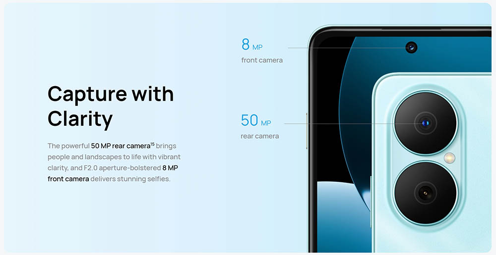 ▼カメラは50MPシングルカメラを搭載。QRコードの読み込みや記録写真程度を目的とするユーザー向けです。↓