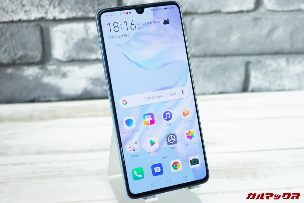 HUAWEI P30は同社最新SoCであるkirin 980、大容量なメモリ6GB、容量128GBを搭載するハイエンドモデル。