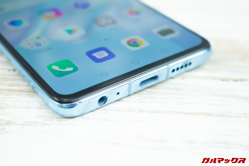 ▼一方、HUAWEI P30は本体下部に備わっているスピーカー1つのみ。↓