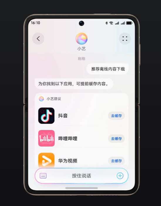 ▼AIスマートキャッシュ。抖音や哔哩哔哩などの動画配信サービスの動画を事前ダウンロードしておける機能。↓