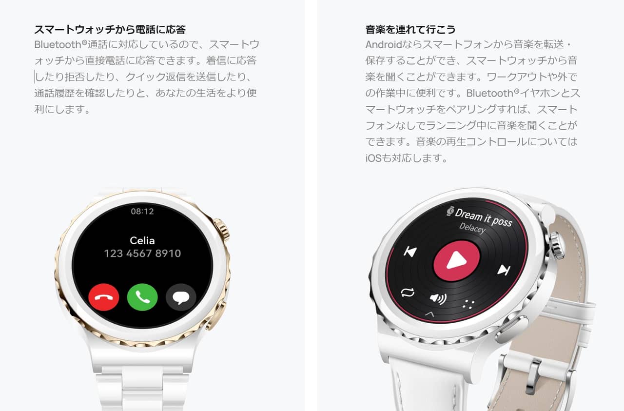 ▼またHUAWEI WATCH GT 3 Proはスピーカーとマイクを搭載しており、Bluetooth通話に対応しているのもGoodです!もちろん音楽コントロールも当然ながら対応。スマホから音楽を直接本体内に保存でき、本体からの音楽再生も対応しています!↓