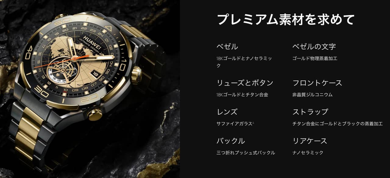 ▼この製品は2023年5月に発売したHUAWEI WATCH Ultimateをベースにプレミアムな素材をふんだんに使った特別なモデルだそう。↓