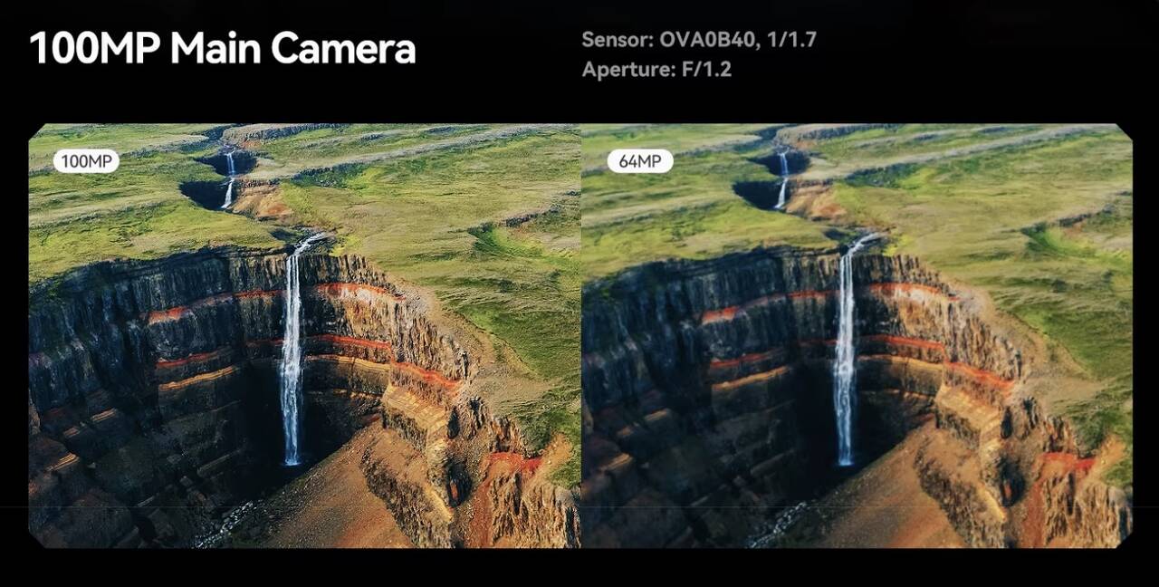 ▼メインカメラは1億画素の高画素カメラを搭載。100MPモードのほか64MPモードも備わっているようです。↓