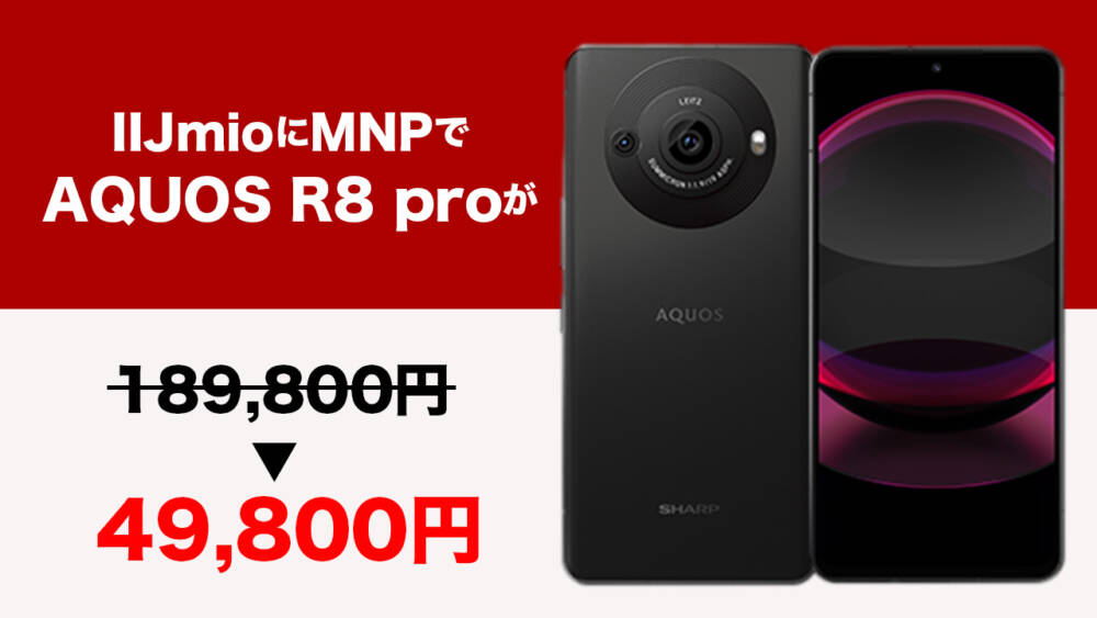 IIJmioでAQUOS R8 proが14万円引き!MNPで1インチセンサーカメラ搭載機が49,800円