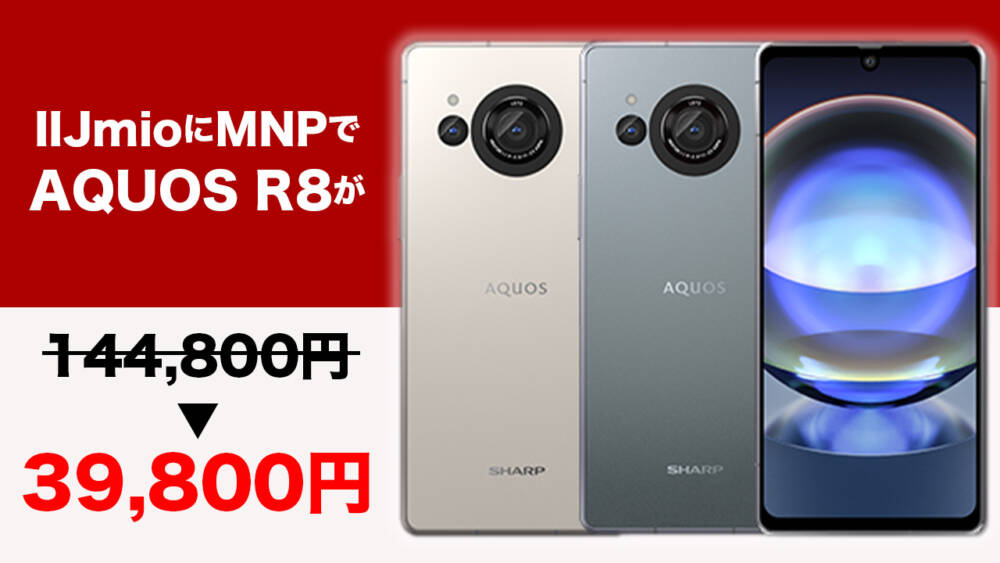 IIJmioでAQUOS R8の10万円引きが在庫復活。AnTuTu150万点、スナドラ8 Gen 2搭載スマホが4万円