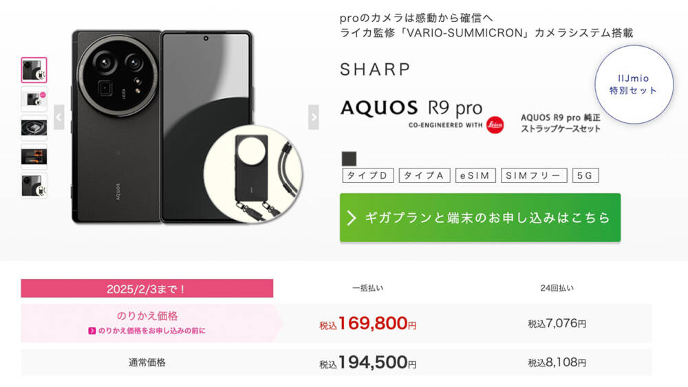 IIJmioでAQUOS R9 proの販売がスタート!MNPは割引価格の169,800円!