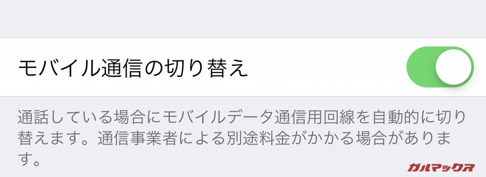 設定手順の最後の方に記載している「モバイル通信の切り替えをオンにする」部分ですが、少々注意するべき点もあるので豆知識として解説しときます。