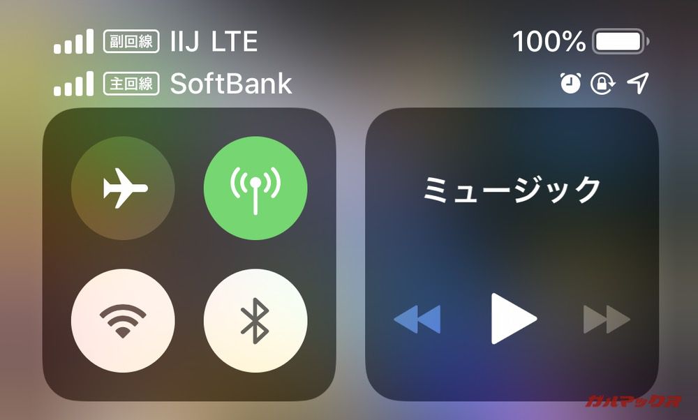 ▼コントロールセンターを表示すると・・・IIJmio LTEって表示されている!IIJmioはMVNEなので自社名が表示されるようになっているんですね!↓
