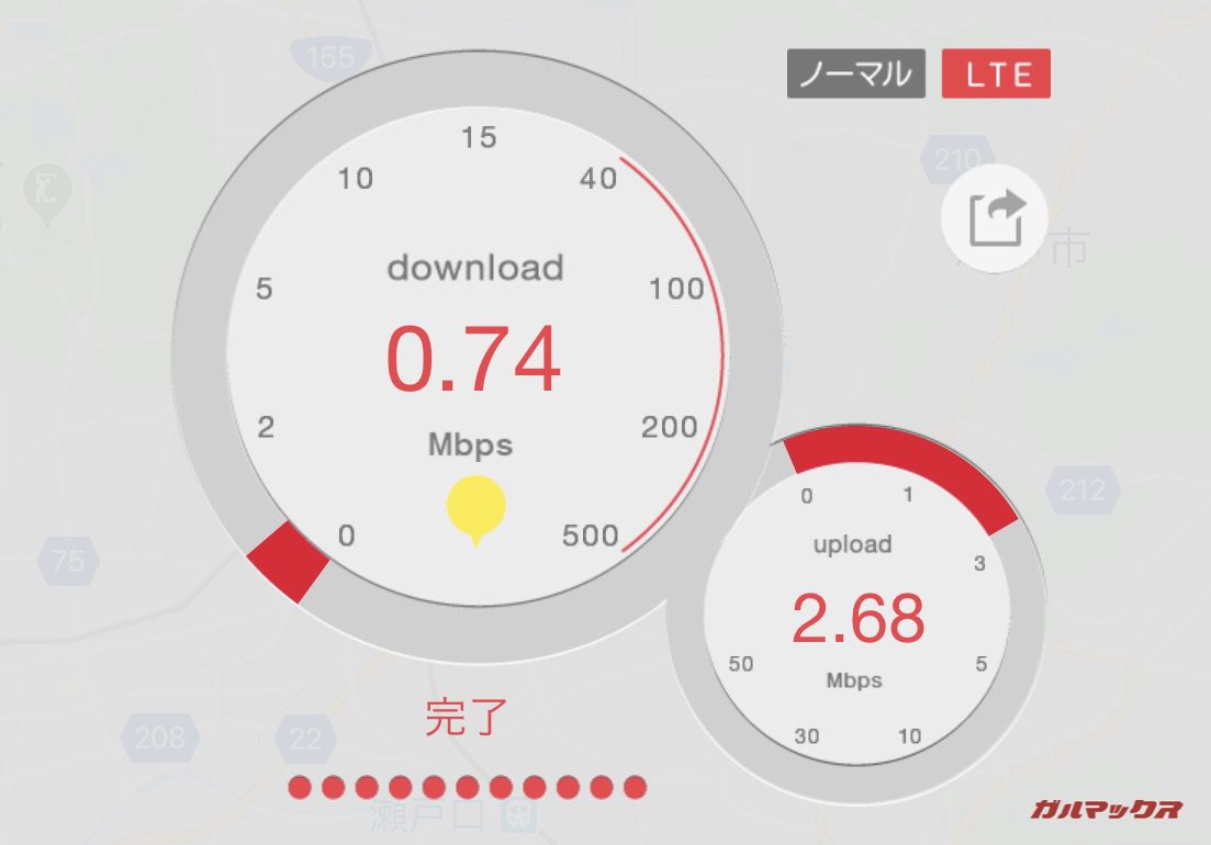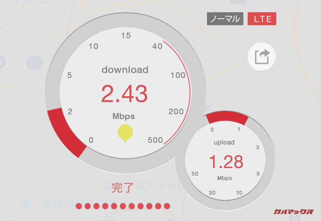 ▼混雑時を抜けた午後2時台、通信速度は2.5Mbps〜3Mbps前後でWEBページの閲覧やSNSなどでは特に不満なし。↓