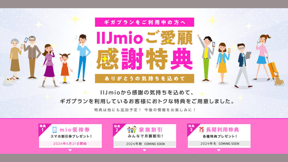 利用者向け優待プログラム「IIJmioご愛顧感謝特典」開始!端末割引・家族割・手数料無償など