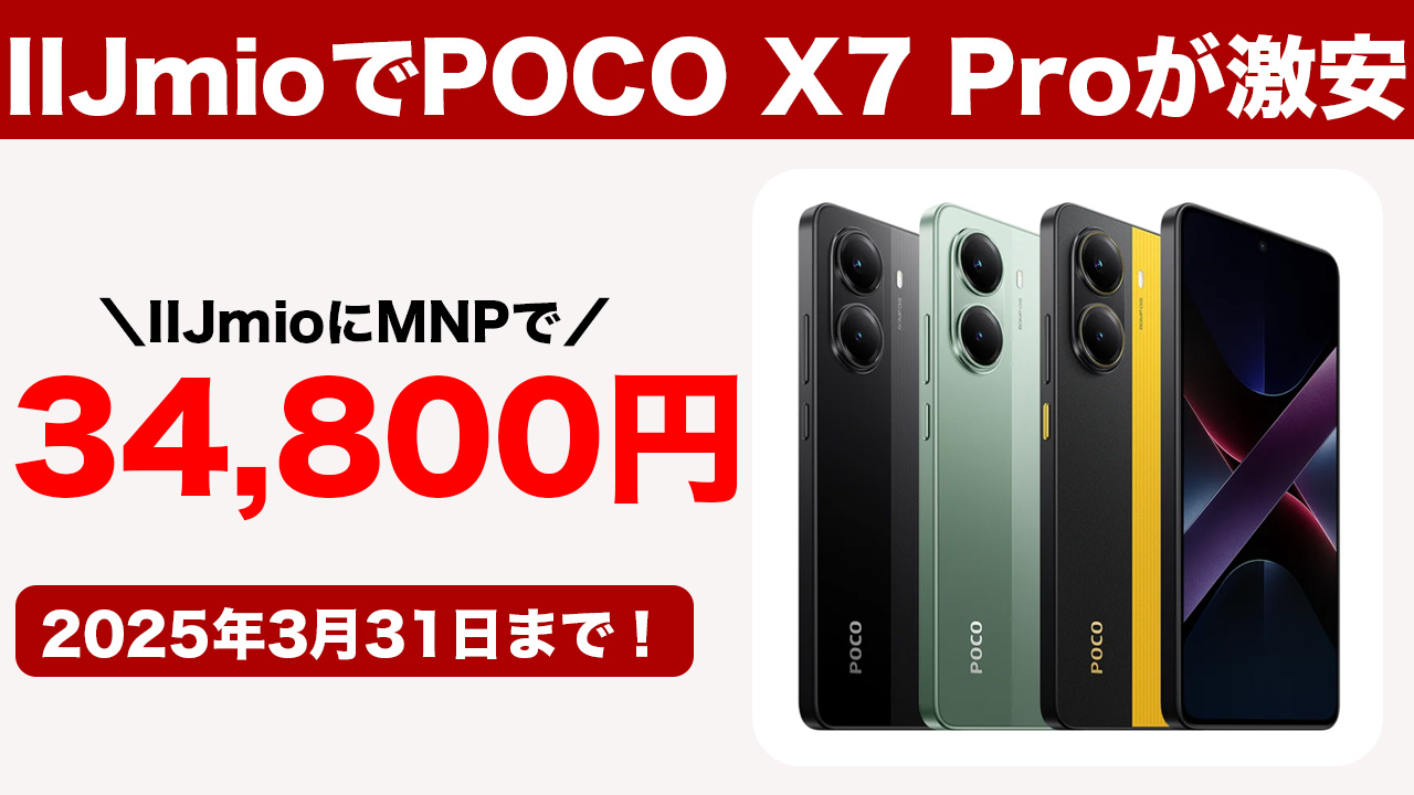 IIJmioでPOCO X7 Proの販売が始まった!MNPで爆安34,800円