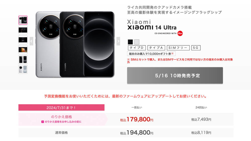 IIJmioにMNPでXiaomi 14 Ultraがグリップ付き179,800円。5月16日10時発売