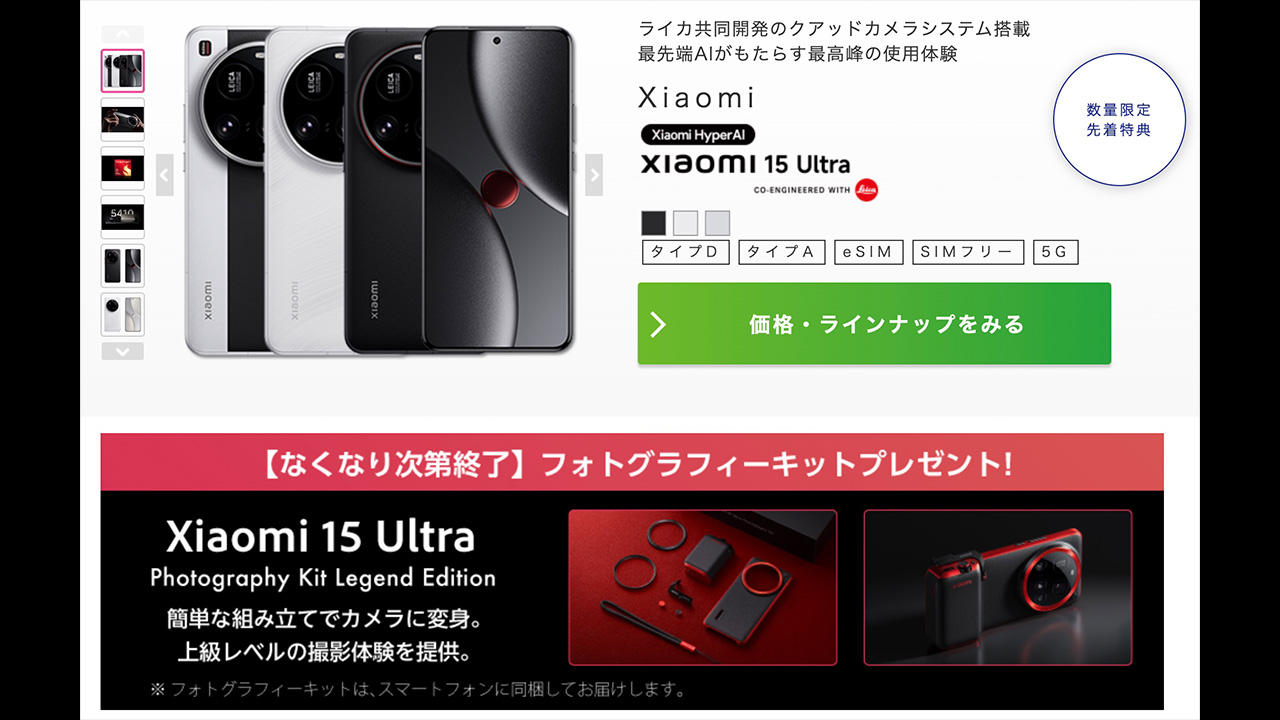 在庫注意!IIJmioはXiaomi 15 Ultraにグリップも付いて154,800円から。安すぎる…。