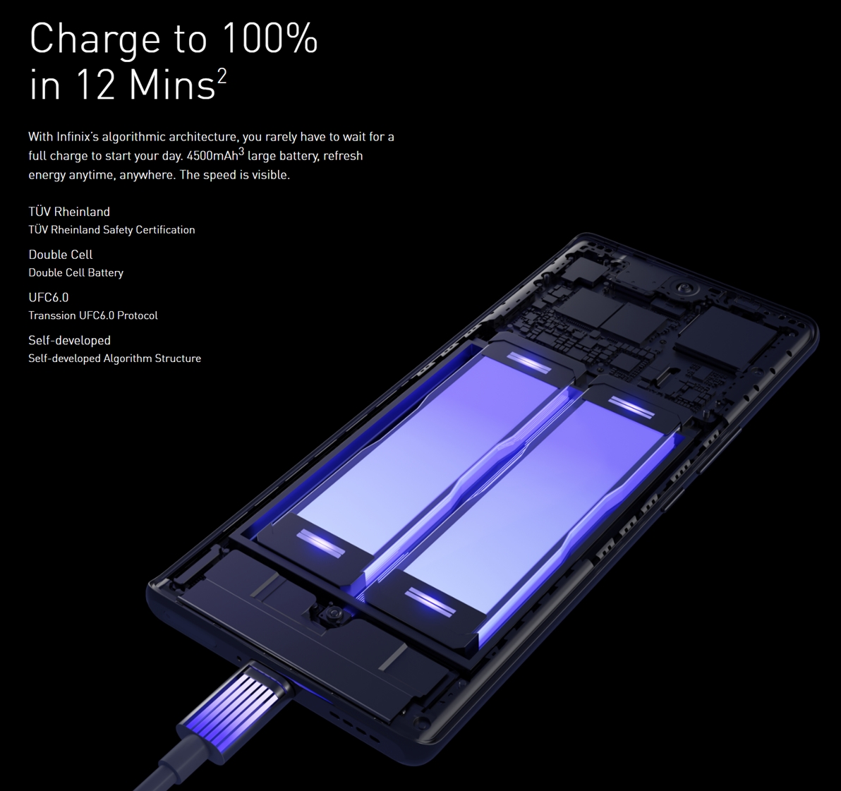 ▼バッテリー仕様もトンデモレベル。容量は4,500mAhとなかなかなサイズだが、特筆すべきは180Wという超高出力充電に対応していること!これにより満充電がたったの12分で終わるという恐ろしい速さ。マジでこれ電池切れと無縁になりそう。↓
