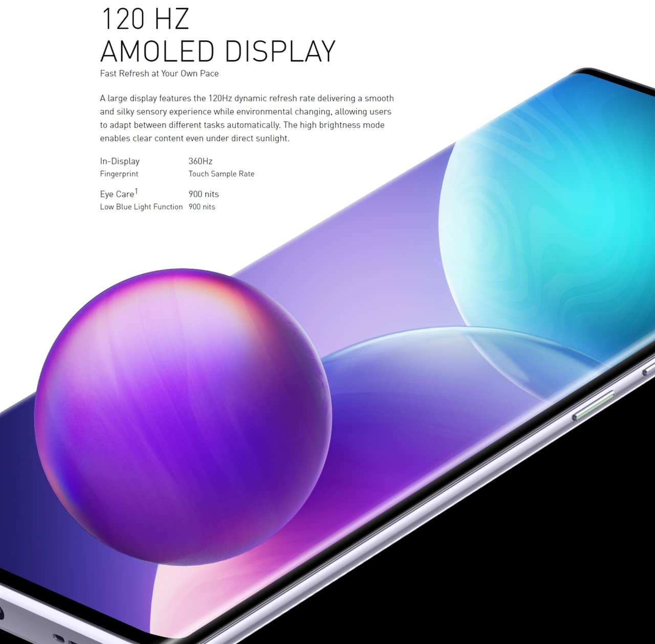 ▼ディスプレイはエッジ形状を採用しており、当然のようにパネルは有機EL。また最大120Hzのリフレッシュレートに対応するなどハイエンドらしい風合いだな!↓